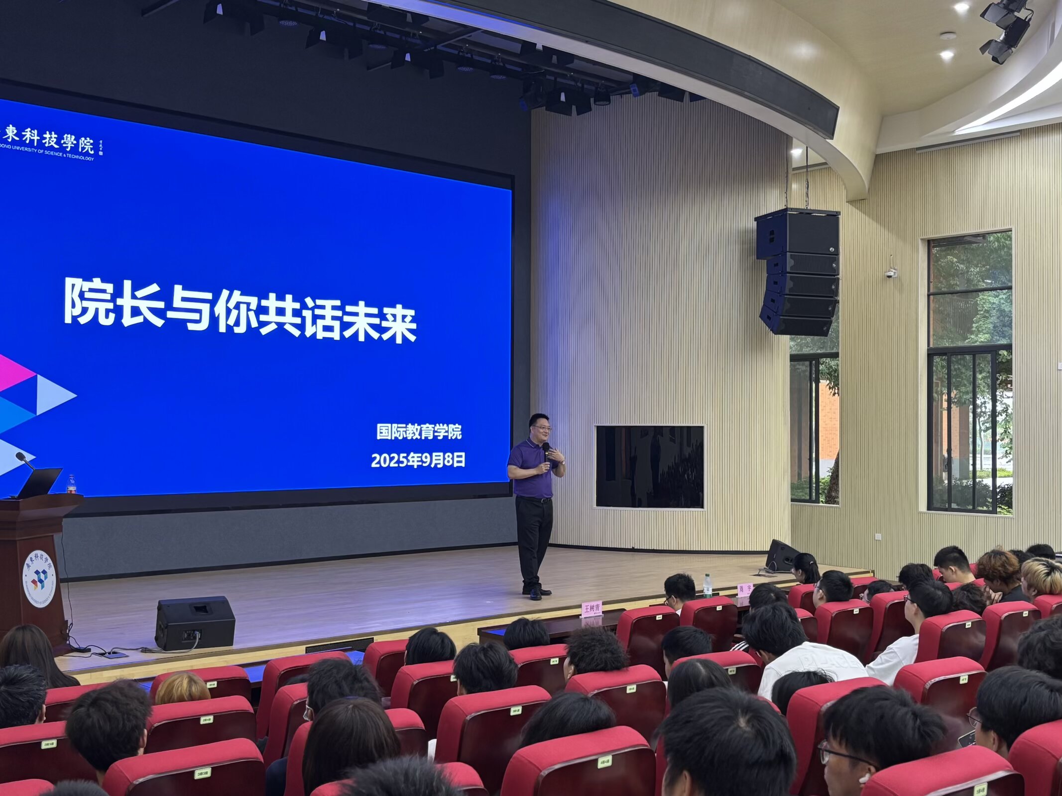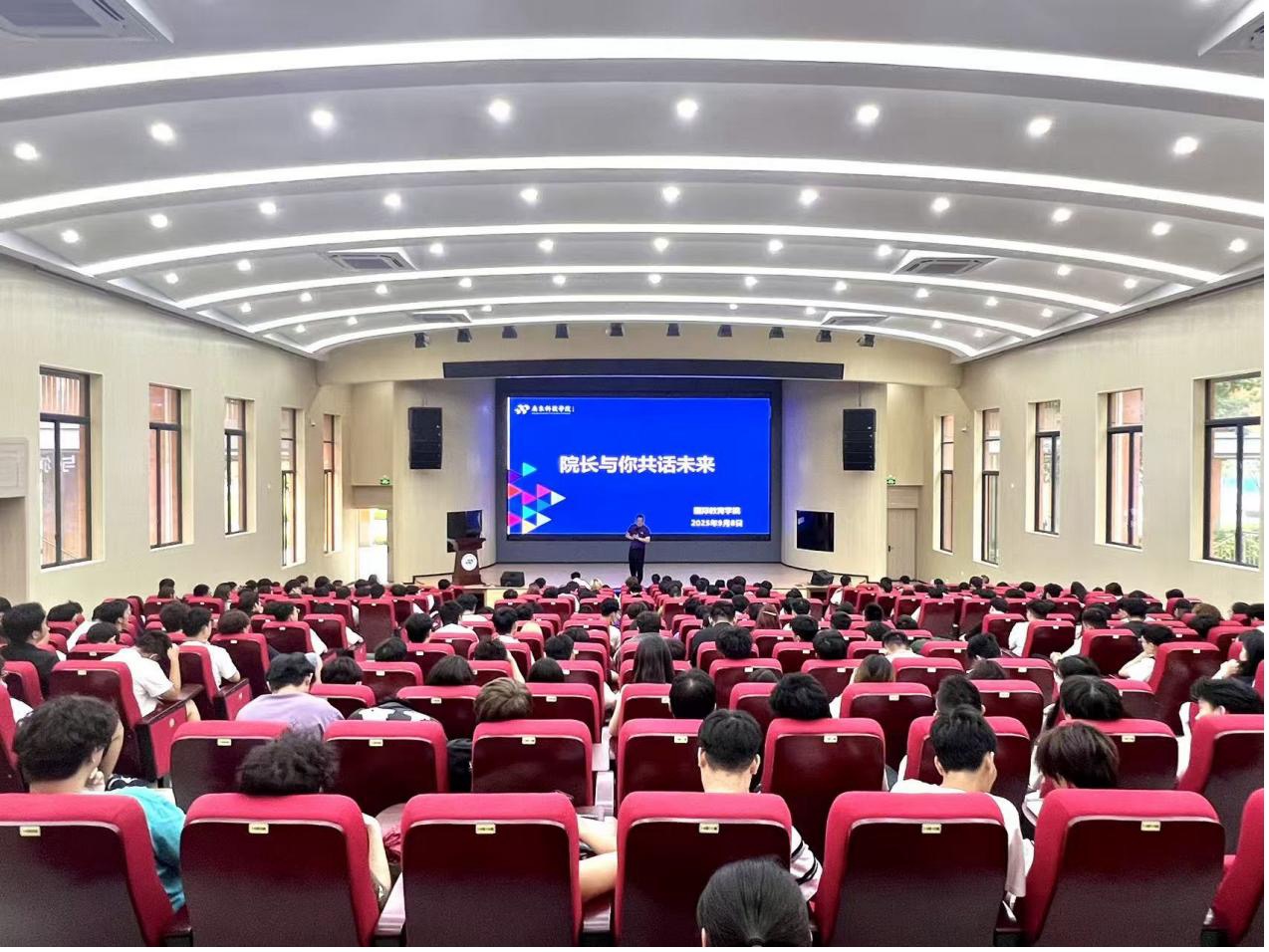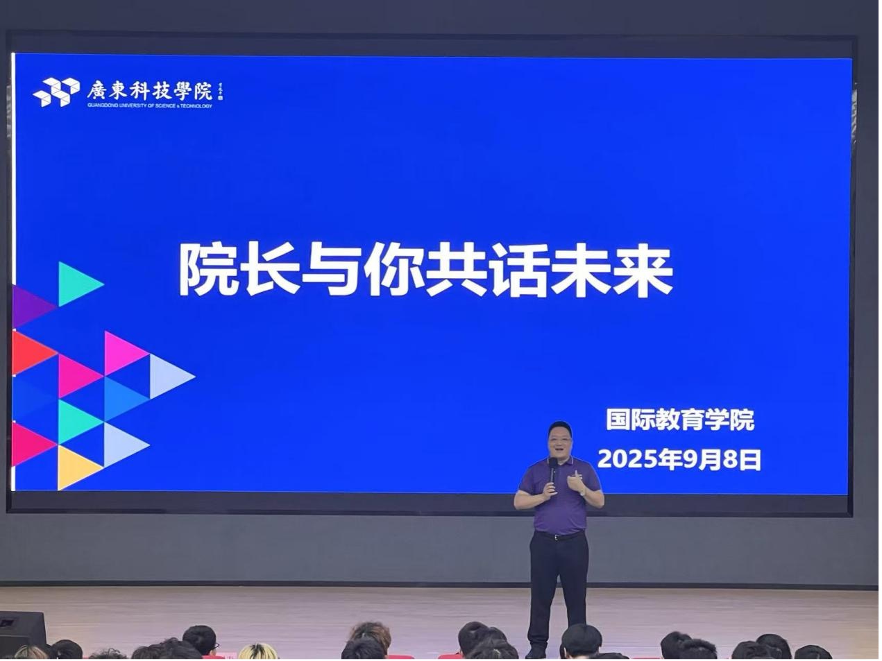本网讯(广科国际交流)新学年伊始,广东科技学院国际教育学院迎来了一批活力满满的新同学。9月8日上午,新生们齐聚2025级国际专本贯通班的“开学第一课”现场,国际教育学院高嘉庆院长用一场温暖深刻的发言,为学子们揭开了大学生活的帷幕。