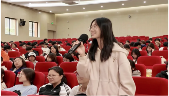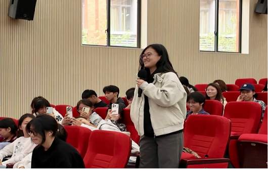 讲座中,马修·劳斯先生以生动的讲述,为在场师生铺展出一幅阿德莱德大学的精彩画卷。他从学校享誉全球的学科优势、开放包容的校园文化,到覆盖学业与生活的国际学生支持体系,进行了细致深入的解读。其风趣幽默的表达,让澳大利亚高等教育的独特风格与互动式课堂体验跃然眼前,令在场师生仿佛身临其境。在随后的互动环节,现场气氛热烈高涨,学子们踊跃提问,围绕赴澳留学规划、英语能力提升、海外课堂适应等话题与嘉宾深入交流,言语间满是对国际求学的热切憧憬与浓厚兴趣。