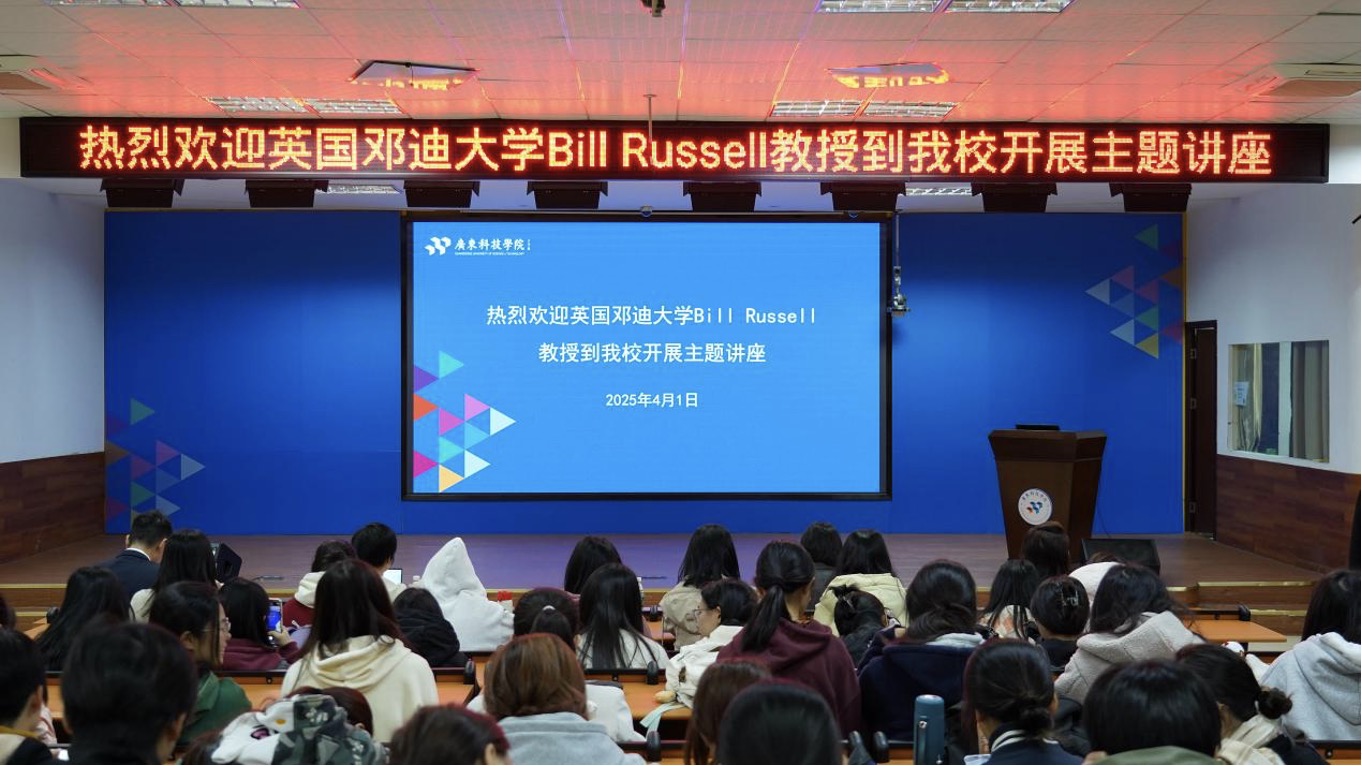 本网讯(国际教育学院)4月1日上午,英国邓迪大学商学院副院长Bill Russell,携该校高级讲师Yin Zhang博士及中国区合作经理戴莉敏女士莅临我校,开展了一场题为“关于环境、人口和经济发展,数据告诉我们什么”的学术讲座。我校教务处副处长程珊、南博集团国际事务部部长助理刘易轩、财经学院和管理学院师生共同参加了此次活动。教务处副处长程珊担任本次讲座主持人。